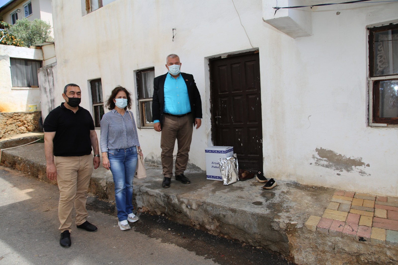 Başkan Şahin gıda yardımının yanı sıra çocuklara da oyuncak hediye ederek, ailelerin yanında çocukları da unutmadı.