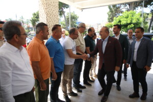 Alanya Belediyesi Park ve Bahçeler Müdürlüğü Şantiyesi’nde belediye personeli ile öğle yemeği yiyen Dışişleri Bakanı Mevlüt Çavuşoğlu ile Kültür ve Turizm Bakanı Mehmet Nuri Ersoy, daha sonra Alanya Belediyesi’ni ziyaret ederek, Alanya Belediye Başkanı Adem Murat Yücel ve belediye personeli ile bir araya geldiler.