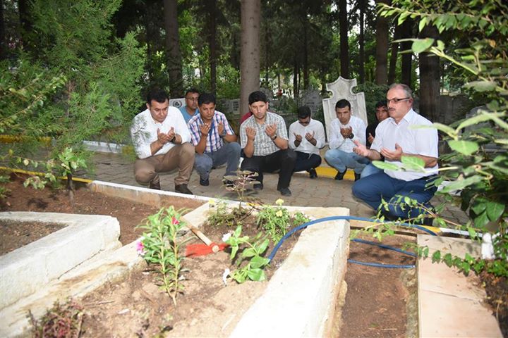 Alanya Belediye Başkanı Adem Murat Yücel, her bayram öncesi olduğu gibi bu bayramda da mezarlıkları unutmadı. Başkan Yücel, Arefe Günü’nde Belediye Mezarlığı’nı ziyaret ederek kimsesiz mezara çiçek dikerken daha sonra Alanya Müftülüğü’nde görevli Çetin Kılıçarslan, Murat Demirhan ve Musa Tuncer ile birlikte Şehit Mezarlarını ziyaret ederek dua okudu.