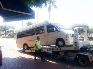 Alanya İlçe Emniyet Müdürlüğü ekipleri ile TURSAB’ın ortak çalışmaları devam ediyor. Kaçak turizm taşımacılığına adeta savaş açan TURSAB emniyet ile birlikte bugün Alanya’da denetim yaptı. Tur faaliyetinde bulunan araçlar tek tek denetlenirken, eksik evrakları olanlar ve kaçak tur taşımacılığı yapan araçlar trafikten men edildi ve cezaya mahkum edildi.