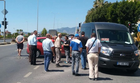 Olay, Mahmutlar Mehmet Çakır Caddesi D400 kavşağında meydana geldi. Hatalı dönüş yapan bir transfer aracı ile kırmızı ışık ihlali yapan özel bir otomobilin çarpışması sonucu kaza meydana geldi. Kaza sonucu iki araçta da maddi hasar meydana gelirken, otomobil de bulunan bir çocuk yararlanarak hastaneye kaldırıldı. Otomobil sürücüsü kazayı hafif sıyrıklarla atlattı.