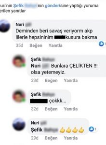 Öte yandan Şefik Bahçe’nin paylaşımına AK Parti için hakaret dolu yorum atan Nuri Ç. isimli şahsında yakalanarak gözaltına alındı.