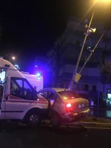 Mahmutlar Barboros Caddesi Armas Otel kavşağında Ambulans ile bir araç çarpıştı. Çarpışmanın şiddeti ile ambulans, diğer yönden gelen aracı orta refüjdeki aydınlatma direğine savurdu. Kazada araç şoförü hafif yaralanarak hastaneye kaldırıldı..